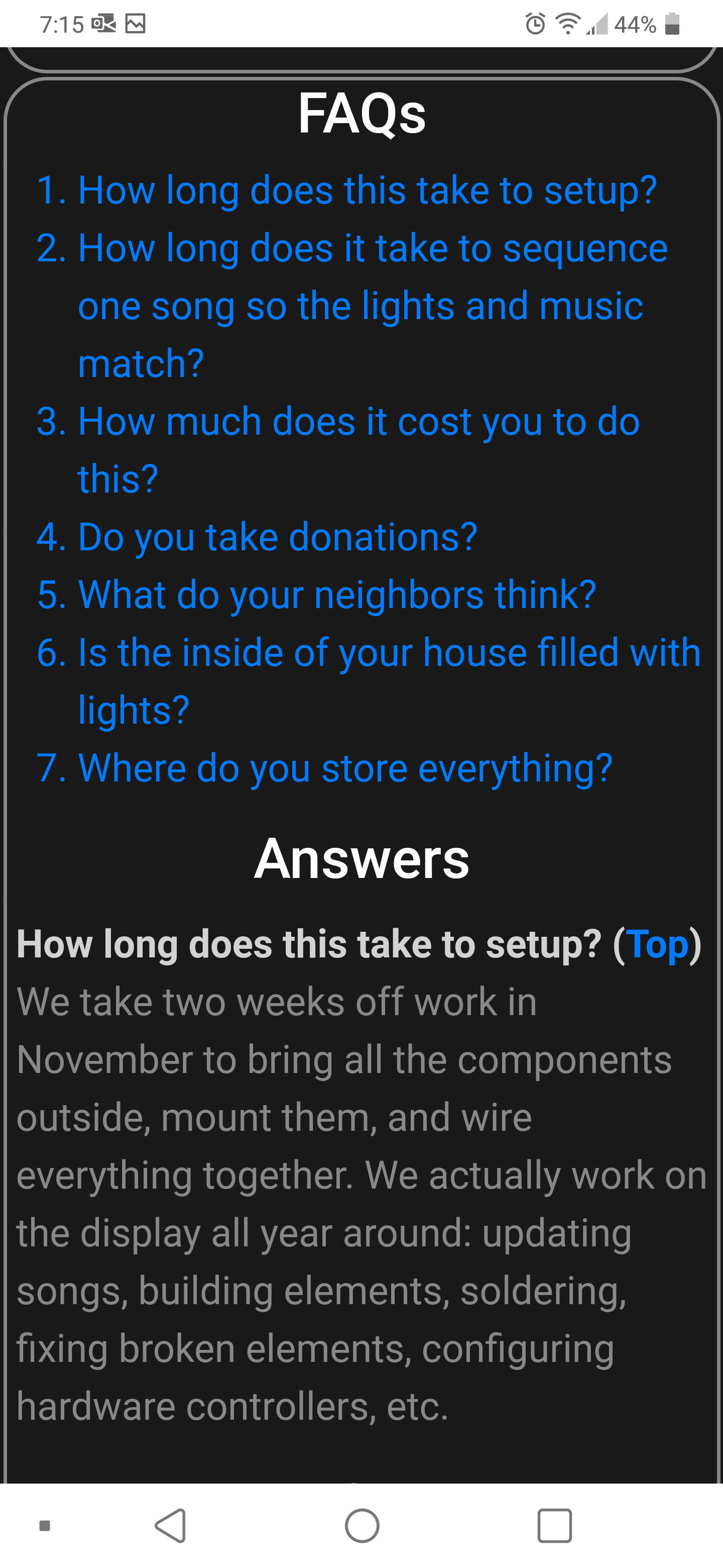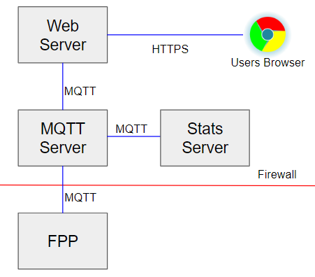 - We use the Falcon Player to actually play the songs on the display. It sends periodic MQTT updates on which song is playing and how many seconds are left, which are transmitted to each active web client via the web server. (Greg contributed source code to the Falcon Player project to enable this capability.)
