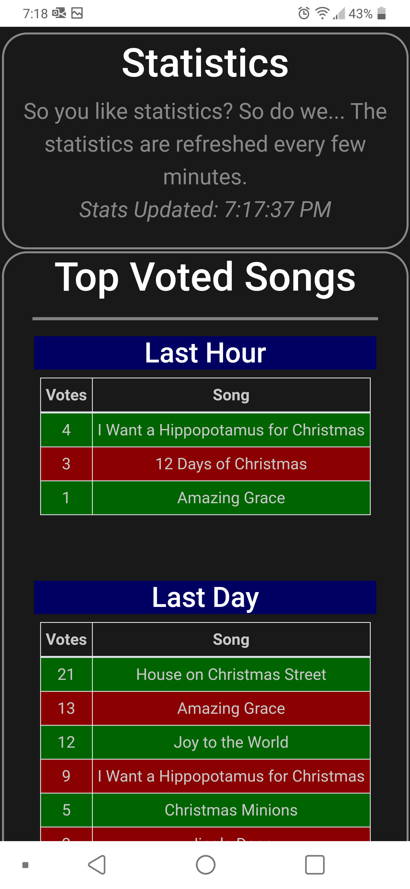 - To ensure voters don’t keep repeating the same song, once a song has played, it isn’t available for voting for around 9 minutes.